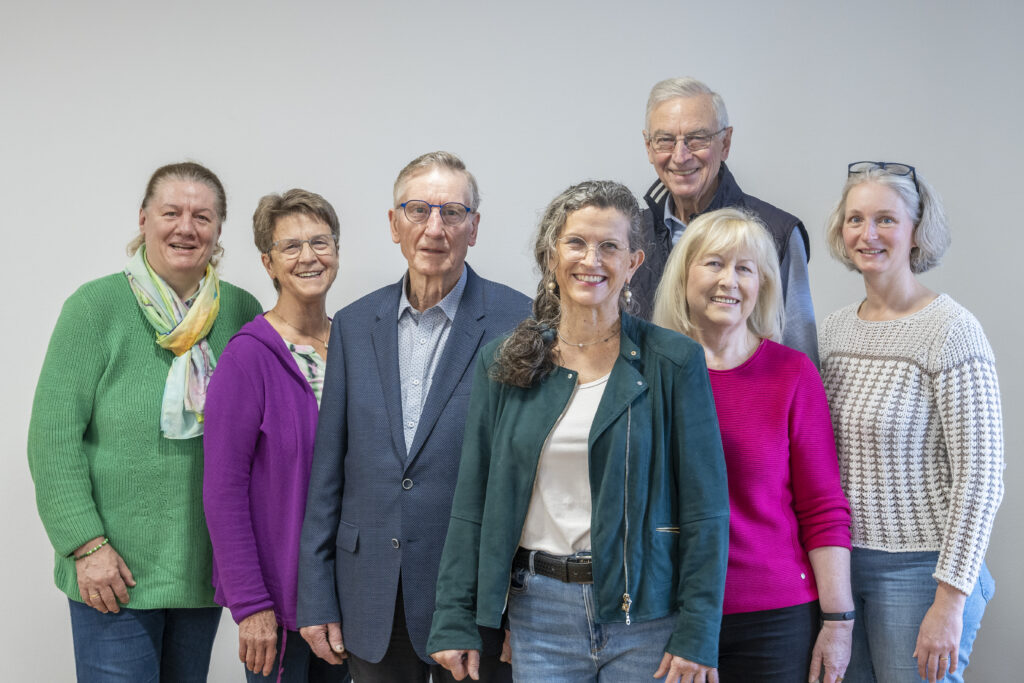 von rechts: Martina Hahn (Schriftführerin), Rudolf Heinle (Kassier), Hannelore Mathon (Beisitzerin), Christine Steimer (1. Vorsitzende), Manfred Hartl (2. Vorsitzender), Gertraud Krakowka (Beisitzerin), Sybille Seiler (Beisitzerin)